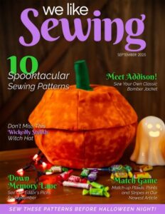 We Like Sewing has featured my pumpkin-shaped fabric treat bowl on the cover!